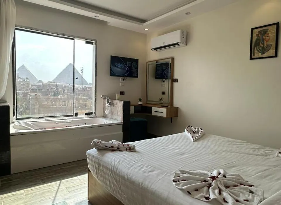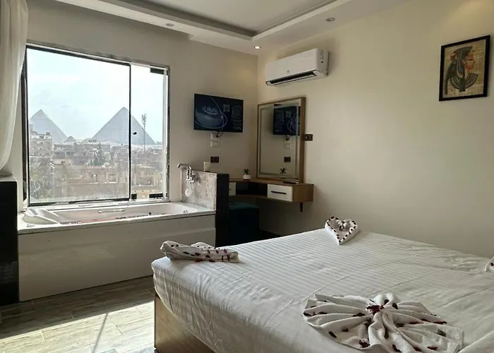 Offering a restaurant, the 3-star Rose Pyramids View Hotel Cairo lies in the Giza district, about a 10-minute ride from the Giza Necropolis and within 7 km of the Pharaonic Village. There is also parking.